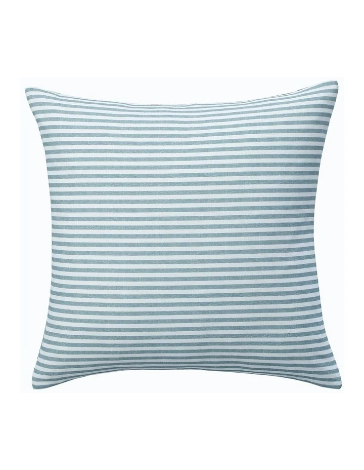 Abertine is a contemporary floral design of watercolor Peonies. Its a light and airy pattern with a woven cotton texture ground. The horizonal chambray blue stripe on the reverse is an added updated classic detail.