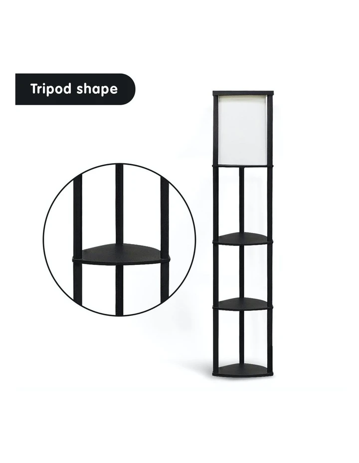 Brighten up your home, dorm room, or office with our tripod shelf floor lamp. Its rounded triangle shape makes it ideal for dressing up bare corners or for use as a combination bedside table and lamp.