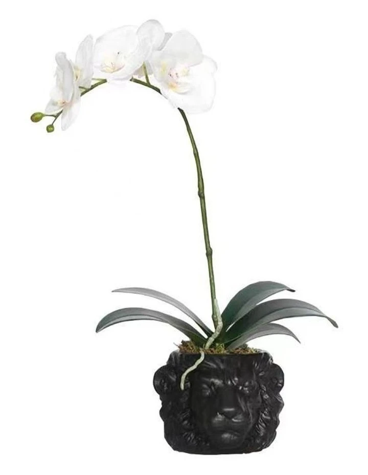 Exclusively Designed by Vicky Yao, Real Touch Artificial Orchid Arrangement in Ceramic Black Lion Head Pot with 48 cm Height