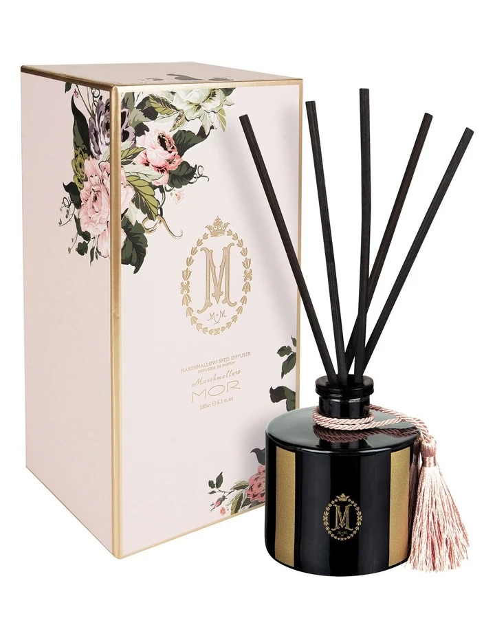 Opulent floral decadence entwined with the elegance of sweet Vanilla Musk exudes from this exquisite Reed Diffuser. Complete with Black Reeds and adorned with a tassel, let the mesmerising scent of Marshmallow gloriously rapture and add a nostalgic ambience to any space.