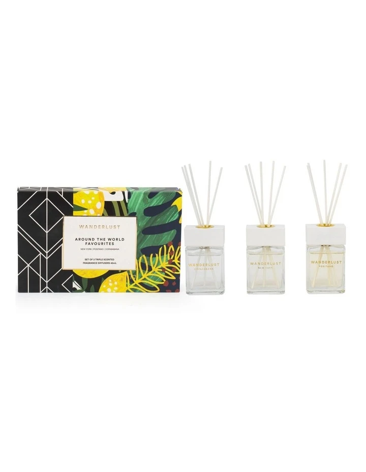 The Wanderlust "Favourites" Diffuser Set from salt&pepper has scents based on places so you can visit the world through your nose. With fragrances from the finest European perfumeries, this set of three 45ml diffusers, each with a 2-3 lifespan, has aromas of Positano, Copacabana and New York, designed to ignite your desire to travel. Because everyone has that one foreign city they feel is their calling, whats yours? Bring it home with you and let the Wanderlust Diffuser Set showcase your worldly desires.