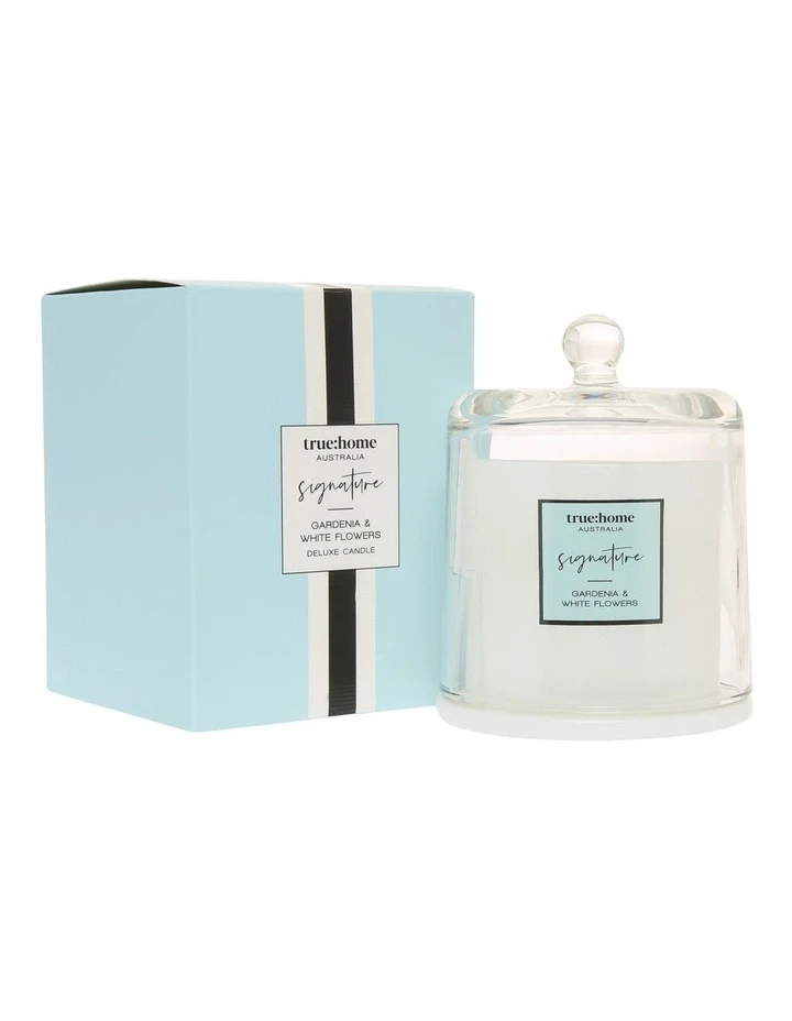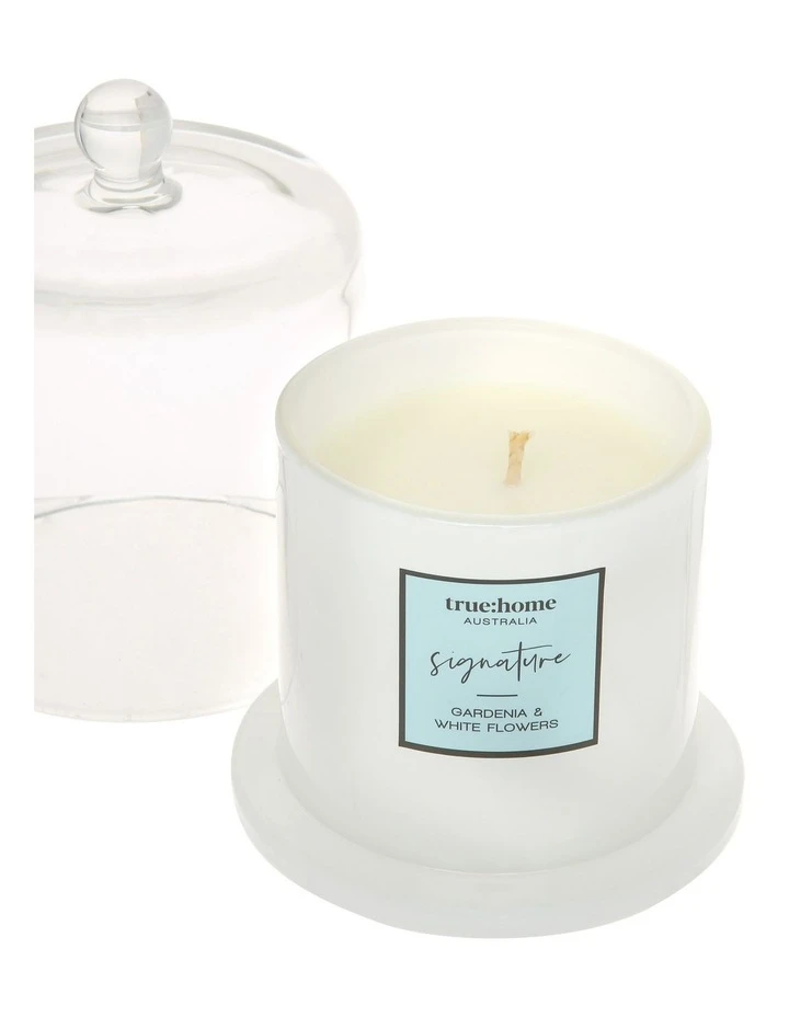 True Home Signature Candle With Cloche Gardenia & White Flowers