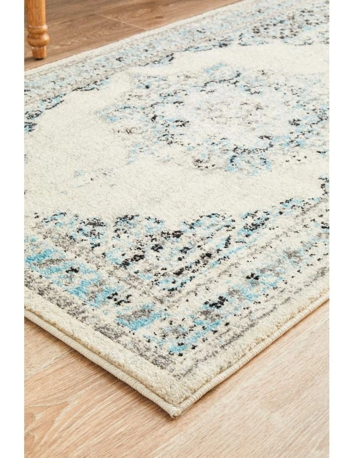 This delicate piece of art from Century collection brings forward a sophisticated pile featuring an intricate intertwining medallion pattern in blue major strokes laid on an off white context. It has this remarkable appeal adding a striking element to your neutral decor at home. Each striking rug is made from premium materials and fiber for guaranteed strength and resilience to protect against stains, soils and as well as internal pollutants.