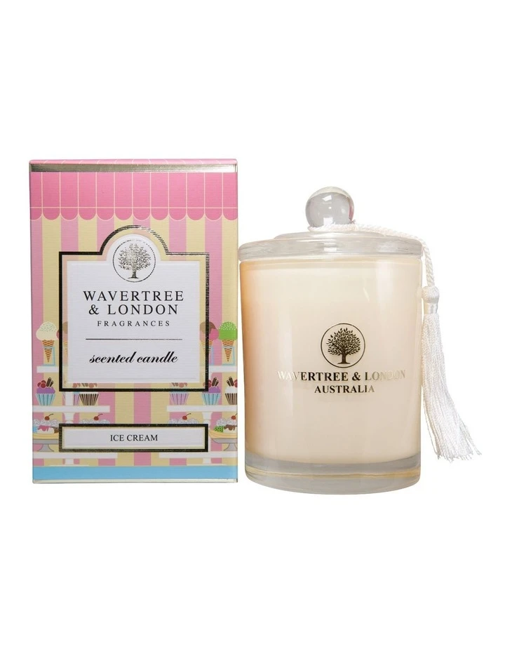 Inspired by childhood memories of long hot summers and delicious creamy vanilla Ice Cream cones. A truly indulgent experience, with no guilt! These decadent Wavertree & London Candles are carefully hand poured into our unique glass containers to create an intense aromatic experience. All our fragrances are truly exceptional and have been created by us to give a long lasting and exquisite perfumed ambiance. 60 Hour Burn Time Triple scented to offer a long lasting fragrant candle Made from natural soy wax and cotton wick Hand poured by us in Australia