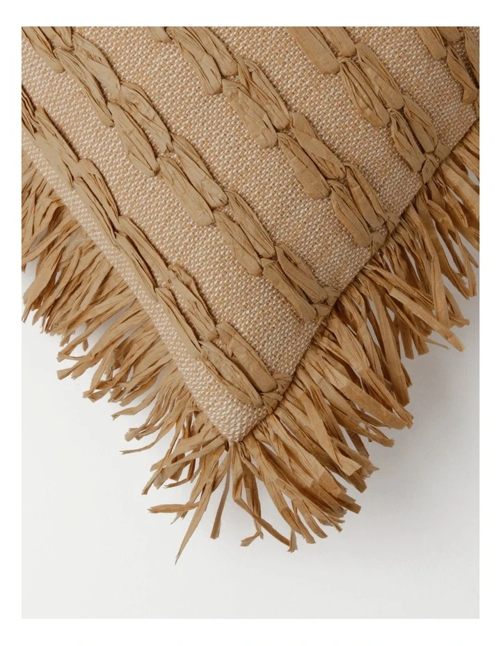 Australian House & Garden AHG Coorabell Raffia & Cotton Cushion w/ Fringes in Natural