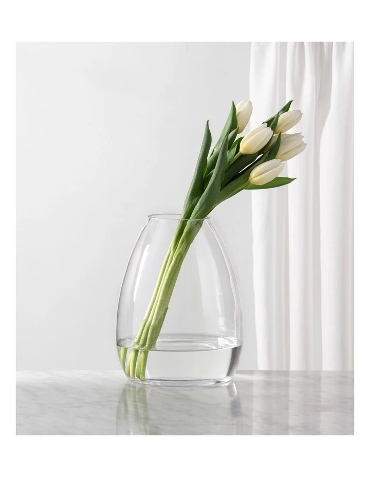 The Jenni vase stands out thanks to it sculptural form. A wide base tapers inward, culminating in a smaller mouth perfect for grouping together floral stems. This will let your blooms form a robust display, whilst still showing off the vase’s shape.