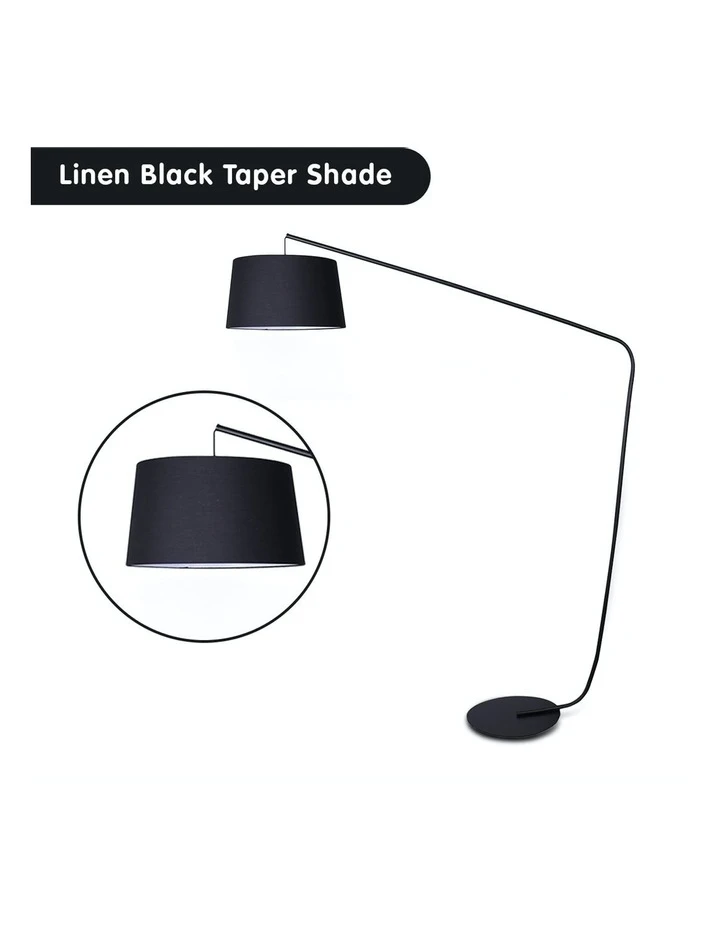 This floor lamp is tall enough to provide overhead lighting, making it a great alternative to hanging pendant lights. Its arm has a wide reach so you can place it over any desk or dining table for added lighting. The black shade also diffuses light for a softer and cosier effect.