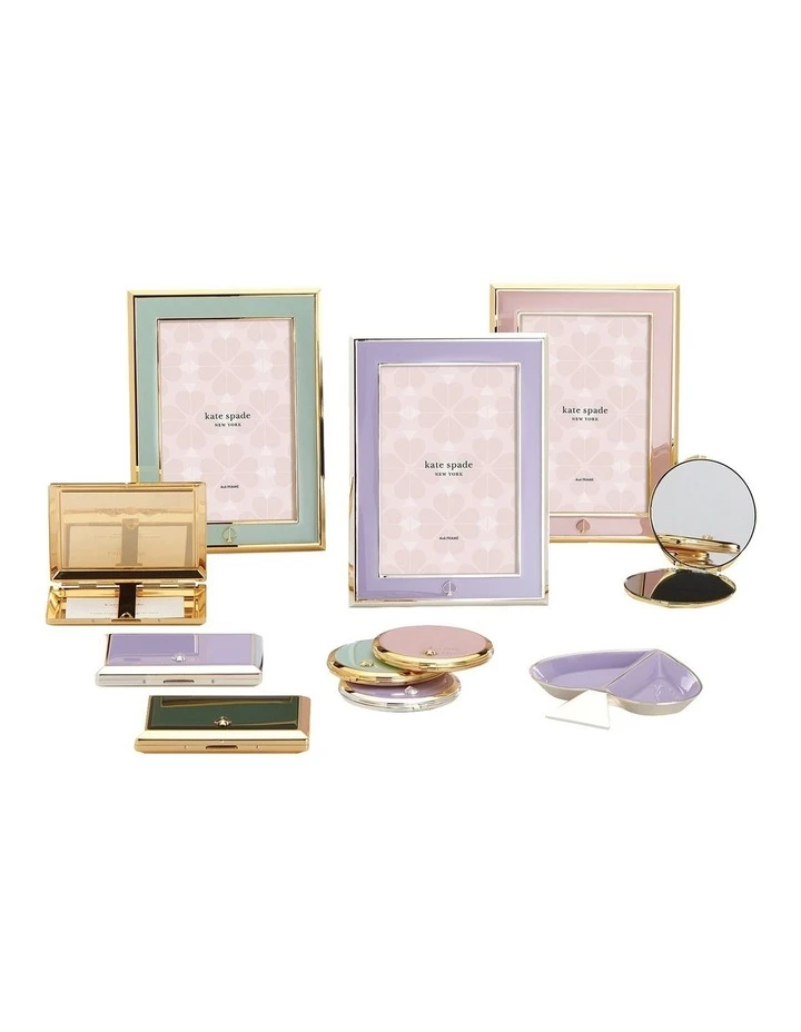 Spade Street by kate spade new york features an iconic faceted spade on smooth metal and enamel. Keep precious memories alive with the Spade Street Blush Frame 4x6in. Featuring stunning blush enamel and a faceted, iconic spade, this frame will hold a lifetime of memories.