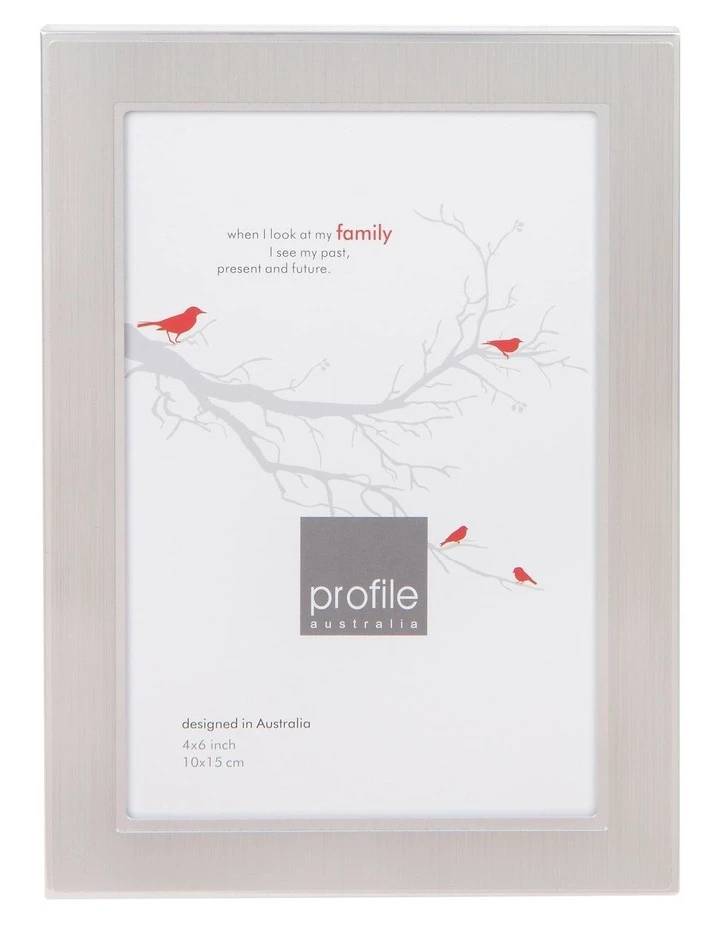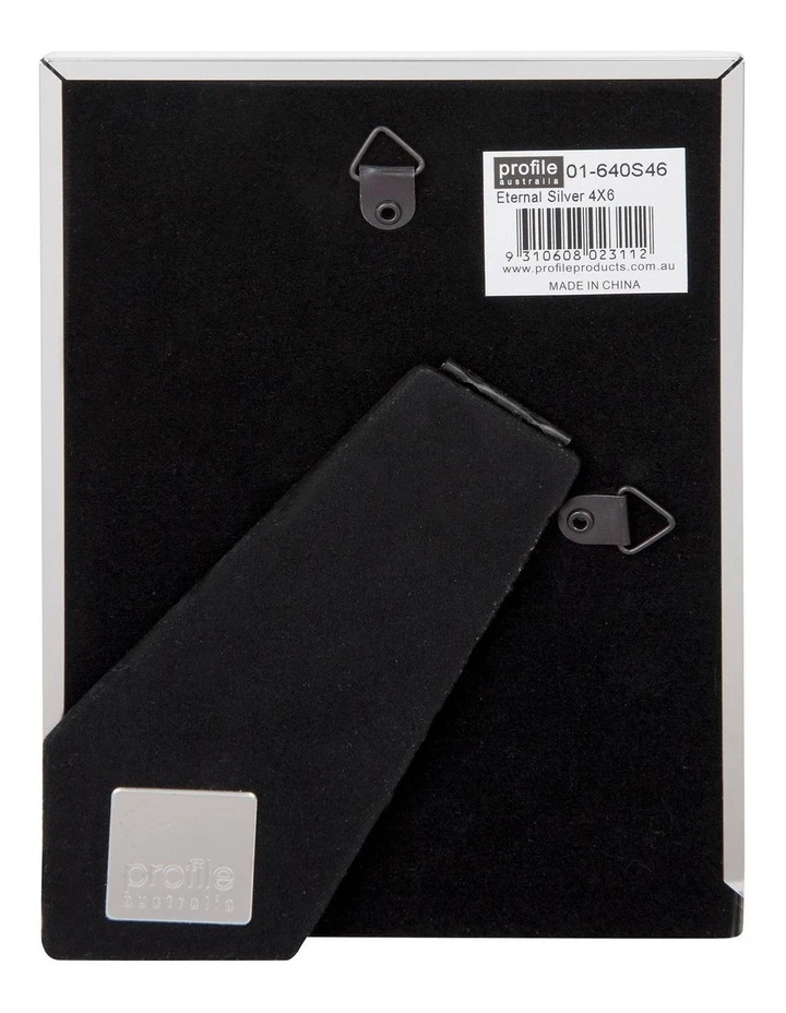 This metal photo frame features a silver finish with a silver trim on the inside and outside edge of the frame. Features a velour back and stand, this frame holds both a portait and landscape photo. The frame fits a 20x25cm (8×10) photo and is supplied in a Profile gift box. Mix and match multiple sizes in this range to create a photo display showcase on your shelf, table or wall unit.