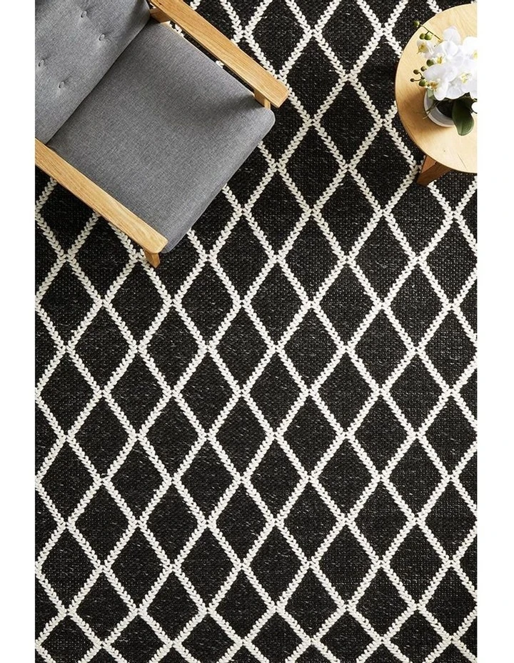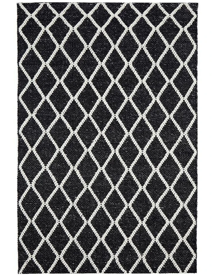 A perfect way to add a touch of luxury to your living space, Huxley is sure to complement contemporary interiors with it’s bold design. A timeless and elegant design, Huxley features a striking diamond pattern on a beautiful black backdrop. Huxley has been masterfully constructed in India from a luxurious pile of wool and polyester fibres that have been hand loomed to create a silky soft and dense underfoot.