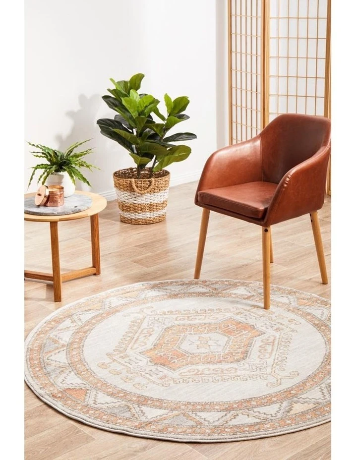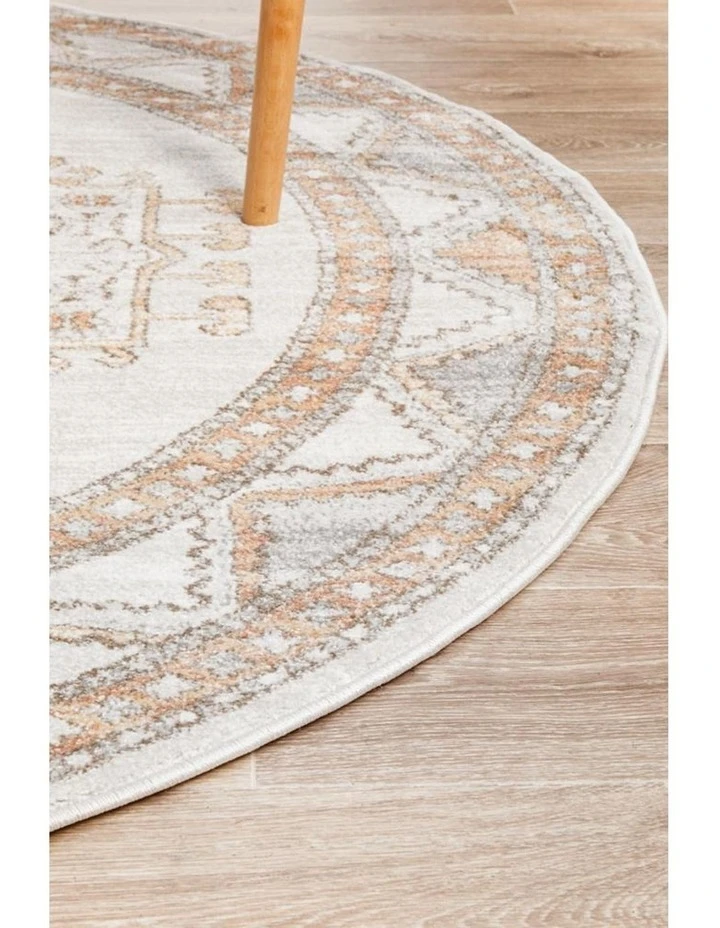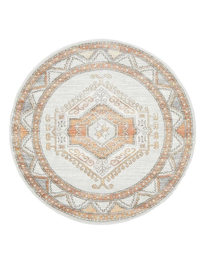 The softest hues flow through this gorgeous Aztec design. Different shades of warm peach and natural pop out of the cool white and silver background. Power loomed with a polypropylene pile, this rug is non-shed and easy care. These rugs offer style, versatility and are available in rectangles, rounds, and runners in a large variety of sizes.