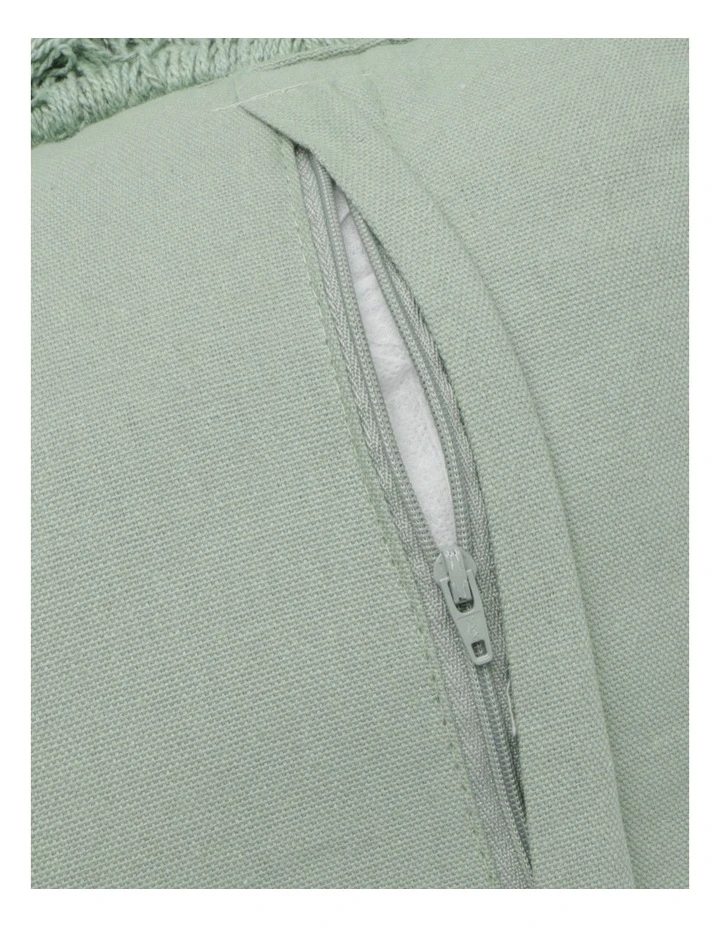 Australian House & Garden Coachwood Ribbed Cotton Woven Cushion w/ Fringe in Eucalyptus