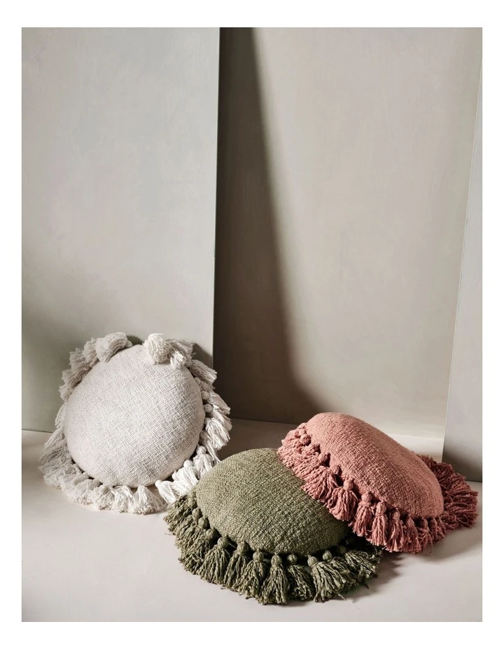 A complete show-stopper for Boho enthusiasts, our round Florida cushion, which now comes in rosette, is made from woven cotton and is trimmed with statement tassels.