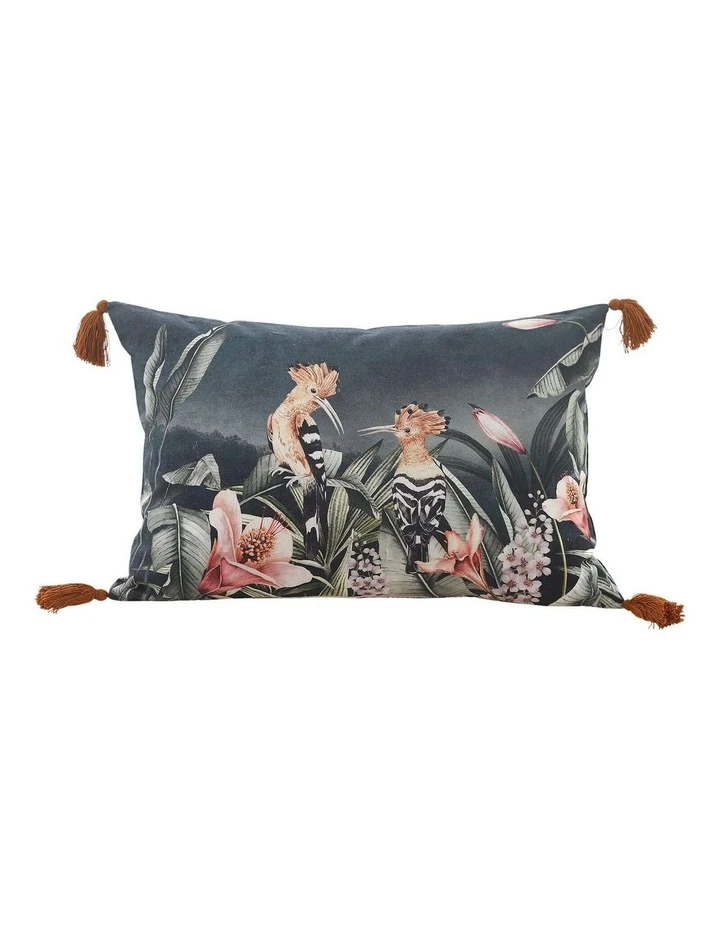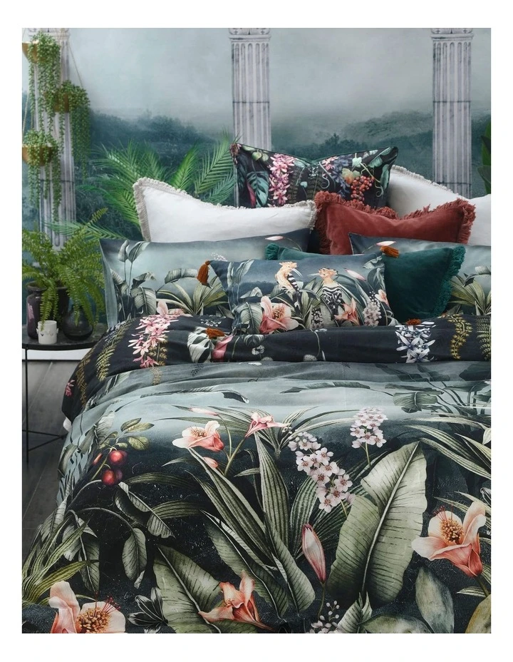 Printed on a linen/cotton blend and finished with tassels on each corned, this will look magnificent styled with its coordinating quilt cover set.