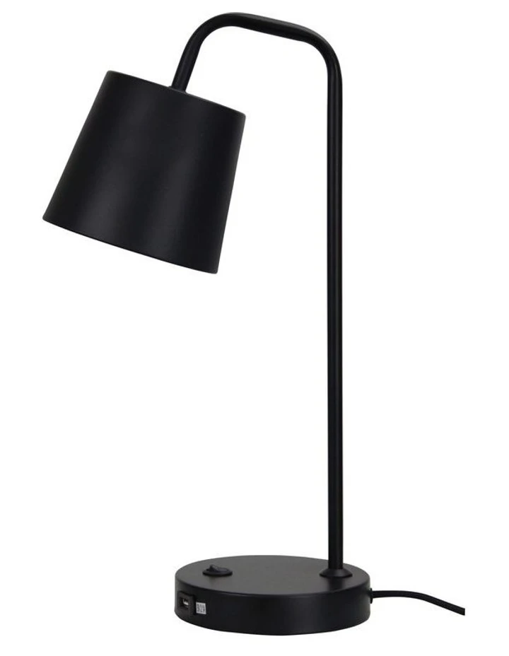 HENK desk lamp has an inbuilt USB charging socket, located on the base. An on/off switch on the lamp allows charging of your device, even when the lamp is off, making it ideal for overnight charging at your bedside or on your desk! The metal shade has a white inner for greater light reflection and is fixed in place. The cord is cloth covered.