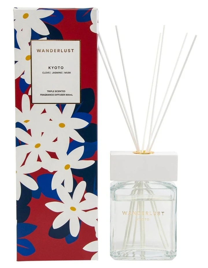 Revel in the traditions of a bustling oriental city with this 300ml KYOTO diffuser from Salt&Pepper’s WANDERLUST collection. Using high-end, natural essential oils with a lifespan up to 14 weeks, this ravishing floral blend of clove, jasmine and musk will infuse your home with an exotic aura transporting you straight to Kyoto. Vibrantly packaged, each chic diffuser includes natural cotton sticks.