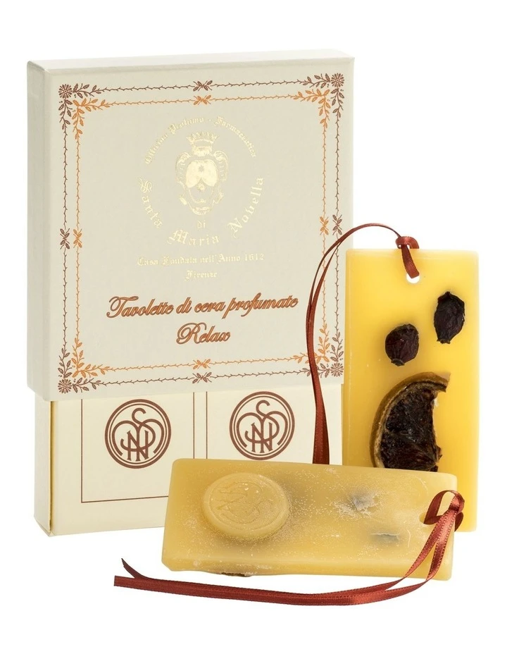 Handcrafted wax tablets, scented with Officina Profumo-Farmaceutica di Santa Maria Novella’s Relax fragrance.