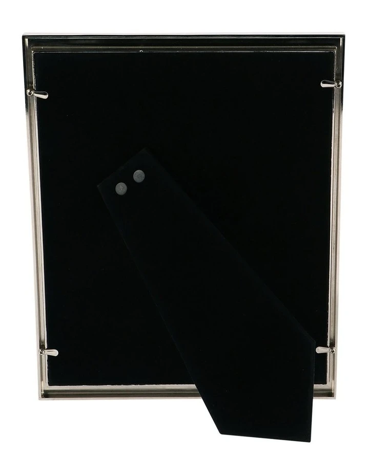 Zinc Alloy photo frame with glass and mother of pearl inlay. Frame size: 20x25cm. Velvet easel backing allowing it to sit horizontally and vertically