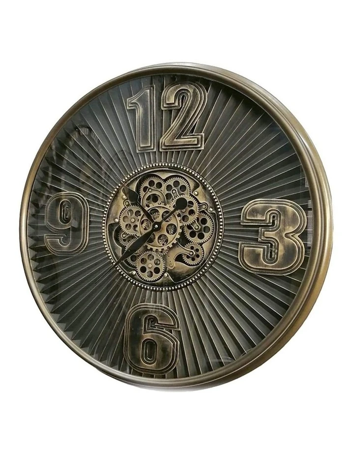 Clean, sophisticated and modern, this beautifully crafted wall clock lends its style from the provincial countryside while putting the popular back in mechanics. The unpolished look provides a neutral aesthetic, while the visible inner mechanisms and cut out details provide visual interest. The frame is made of pure metal with an antique rustic washed metal finish.