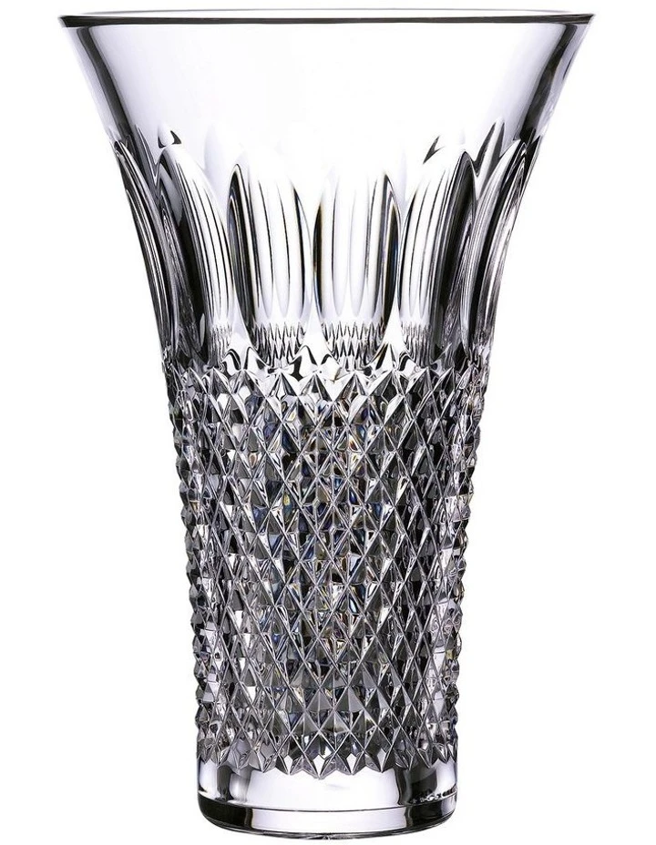The beauty of Ireland, the Emerald Isle, its rugged coastlines, steep cliffs, rolling waves, and the vivid blue hues of the ocean are the inspiration behind Waterfords Treasures of the Sea collection. The Craftsmen of Waterford use a technique, known as casing, the traditional and highest quality way of creating coloured crystal. One or more layers of coloured glass are fused to a base of clear crystal and then by cutting through the coloured casing, the underlying clear crystal is revealed and incorporated into the design. This intricate workmanship, where each piece is blown twice due to the two-layer technique, makes coloured cased crystal even more valuable. This stunning collection from Waterford includes beautifully cut vases in vibrant ocean colours forming eye-catching centrepieces alongside outstandingly crafted tall vases designed to bring unique style to the home with all the rich heritage of Ireland and its unique land and seascapes. Colleen is one of Waterford’s best-known and much-loved patterns, first introduced in 1953 with beautiful contrasts between its intricately crafted distinctive olive cuts and the sparkling Caro cuts. Its elegant history takes a contemporary form with this large 30cm Flared Vase which accentuates the radiant clarity of the fine crystal. Inspired by Irelands rugged seascapes and the movement of the ocean waves, the vase makes a stunning statement piece from Waterford, the home of crystal, and is perfect for a striking floral arrangement or special gift to treasure, presented in a signature grey gift box.