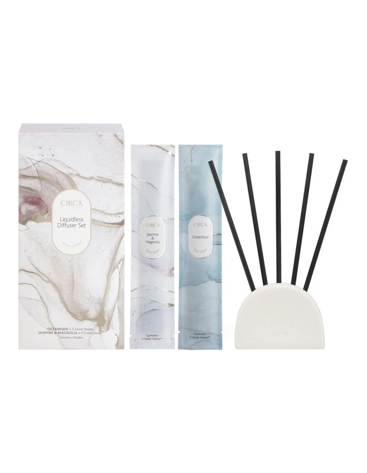 This duo set includes a ceramic holder plus two Scent Stem fragrances that use innovative dry diffusion technology: Oceanique and Jasmine & MagnoliaFlameless & cordless, it’s the perfect always-on fragrance solution for busy households.