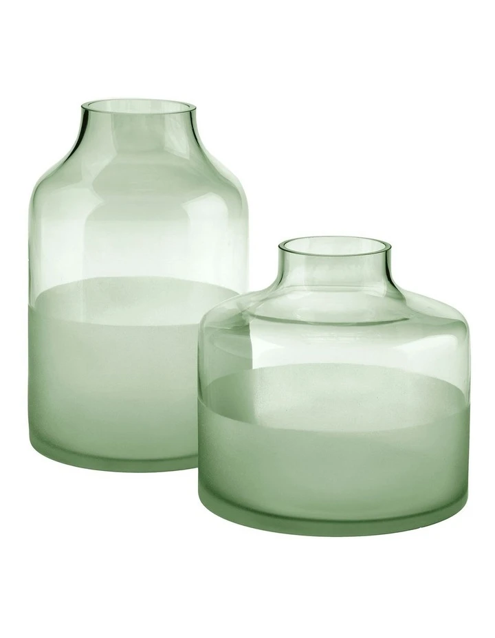 Daphne enjoys matte and shine finishes throughout its green-tinted glass. Allow this piece to stand-alone or pair it up with its coordinating size for a chic decorative vignette.