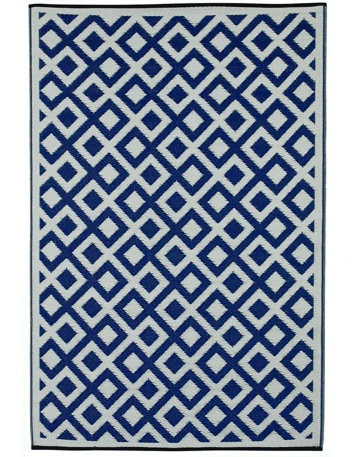 Deals ⭐ Fab Habitat 180x270cm Marina Indigo Blue & White Recycled Plastic Outdoor Rug and Mat ⭐