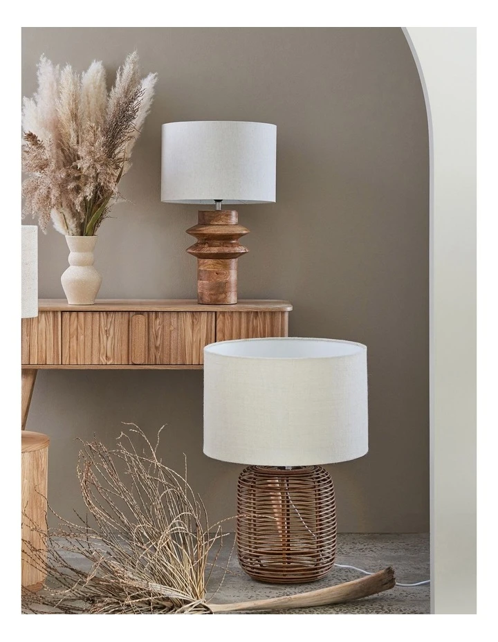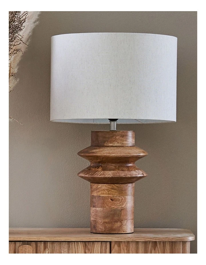 Materials: Shade: Cotton/Linen Base: Mango Wood