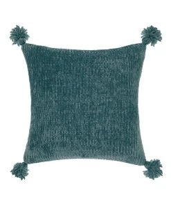 This textured cushion in petrol will effortlessly work in your bedroom or living area and is trimmed with pom-pom corners for a distinctively playful accent.