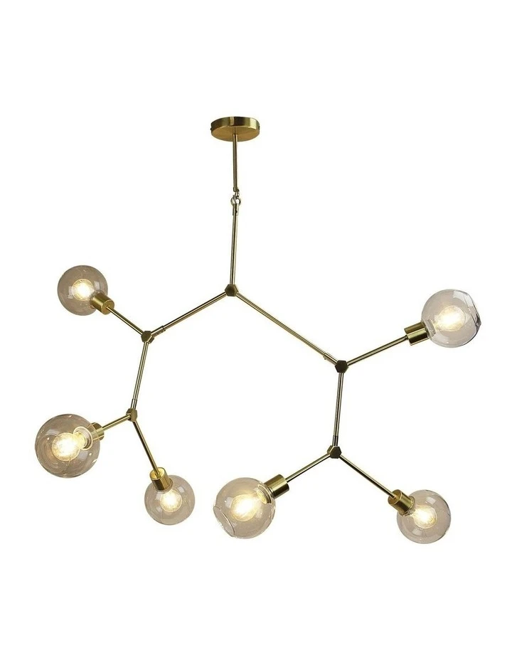 The Padua 6 light pendant features adjustable knuckles, allowing you to create your own look upon installation, and angle the light to where you want it. It’s complete with clear glass spheres.