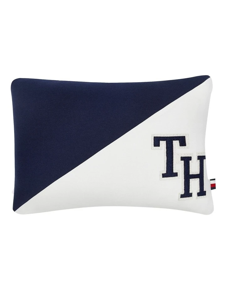 TH Triangle Cushion 30x46cm Navy & White Cushion features TH applique patch, reverse side solid navy, zip closure Style with Conscious Colorblock quilt cover set 100% cotton Spot clean only