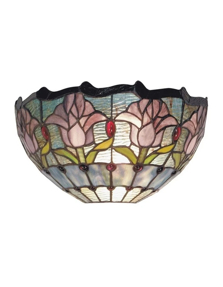 This lamp is an amazing Tiffany style wall light that combines many pieces of art glass to create a stunning and complex look to light your home up. Due to the fantastic design, the wall light can suit any space of your home including living room, bedroom or other entertaining space.