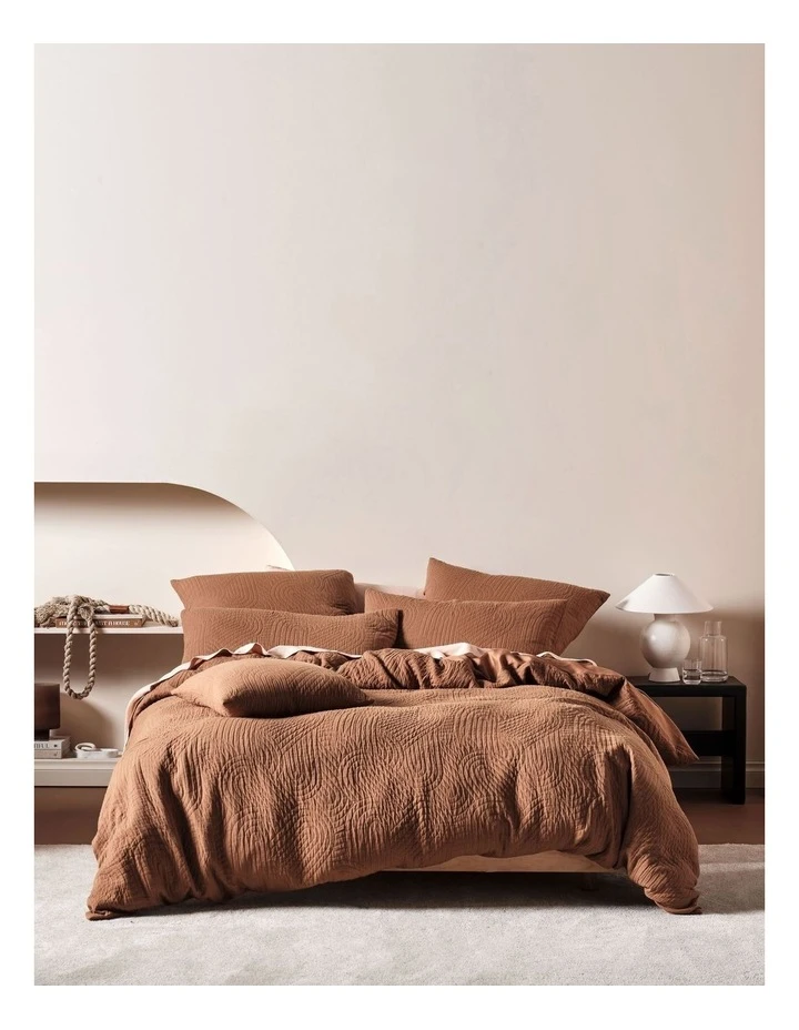 This warming and super-cosy pecan cushion looks sublime indulged with its matching quilt cover set and European pillowcases along with soft, textural accessories for a cocoon-like setting.