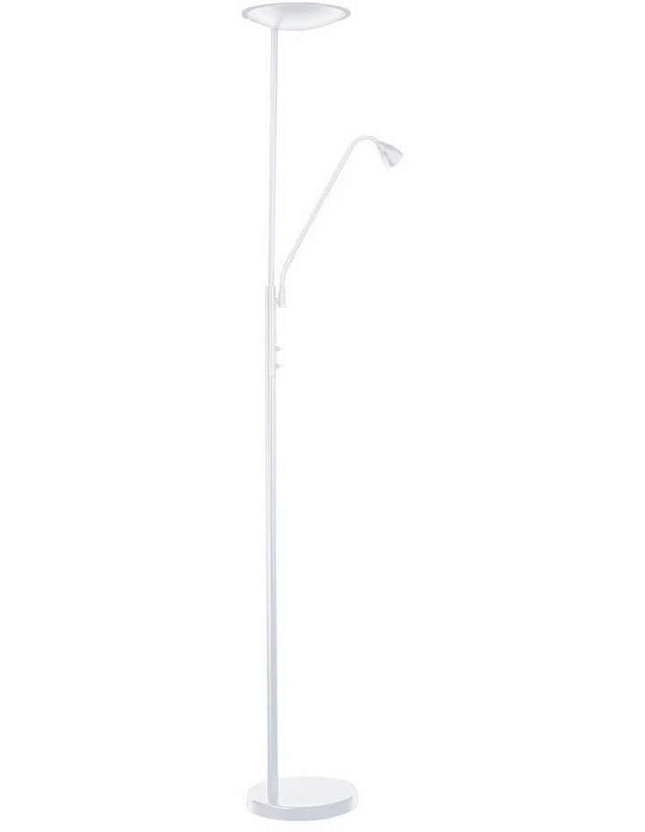 This Modern-contemporary, Mother and Child Floor Lamp, features a slimline, integrated LED panel for the up light and a small integrated LED Spotlight on a goose-neck for reading or task work which can be controlled on the by the switches which are located halfway up the base. available in Brushed Chrome, Black and White.