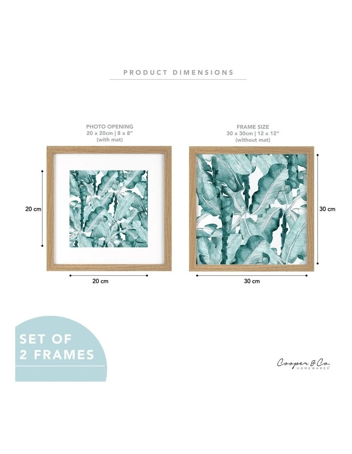 New πŸŽ‰ Cooper & Co Set Of 2 30x30cm Mat to 20x20cm Oak Premium Paradise Wooden Photo Frame 🧨