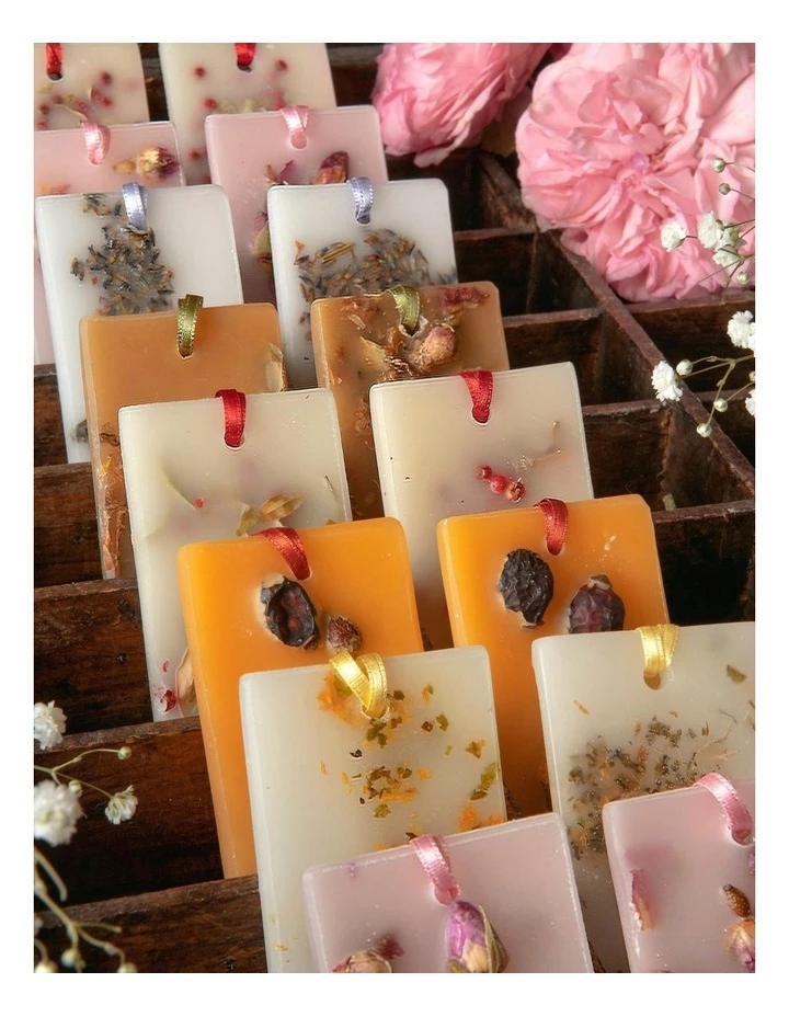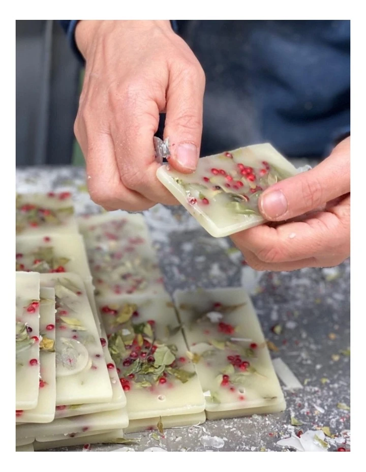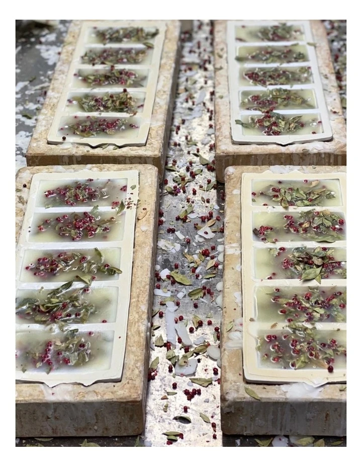 Handcrafted wax tablets, scented with Officina Profumo-Farmaceutica di Santa Maria Novella’s Melograno fragrance.