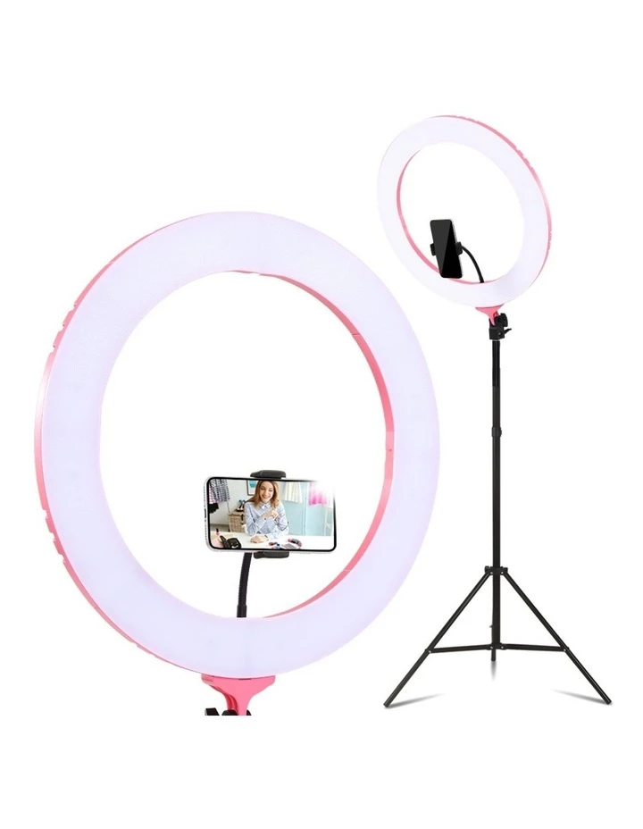 The 5800 lumens ring light fits easily on any standard camera stand and is height adjustable from 80cm to 200cm with a 360rotatable use. The light also comes with a bonus double-sided mirror to assist with makeup, and a carry bag for easy transportation.
