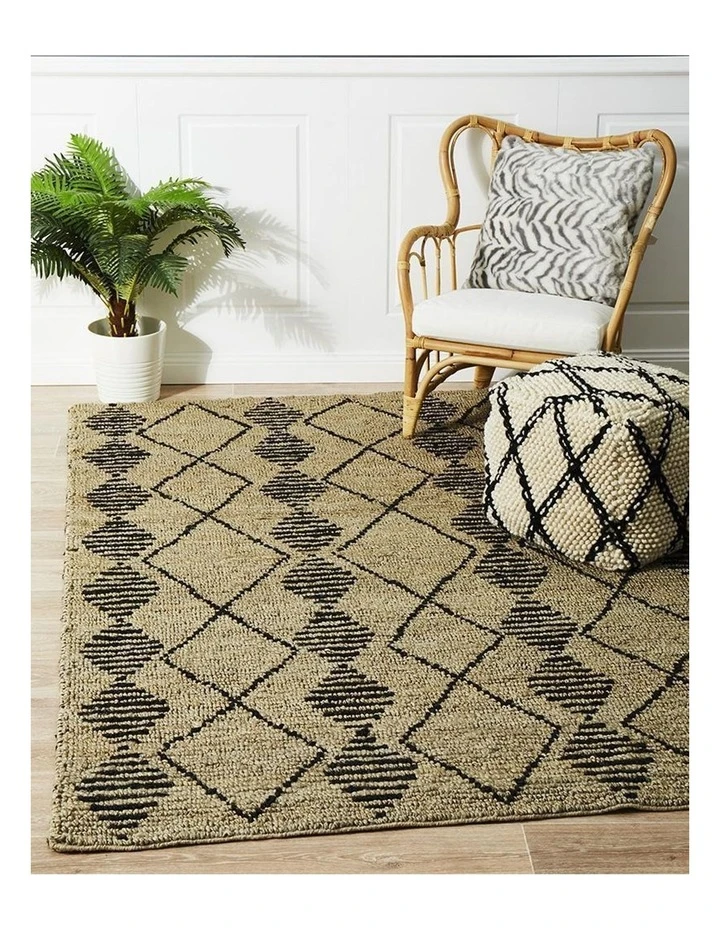Hand made by artisans with a chunky weave for a rustic, tribal look. This product feature high quality jute that is comfortable underfoot. Jute is a favorite choice to give an organic look and feel, being a natural fibre and very eco-friendly. Not recommended for high moisture areas e.g outdoors, bathroom