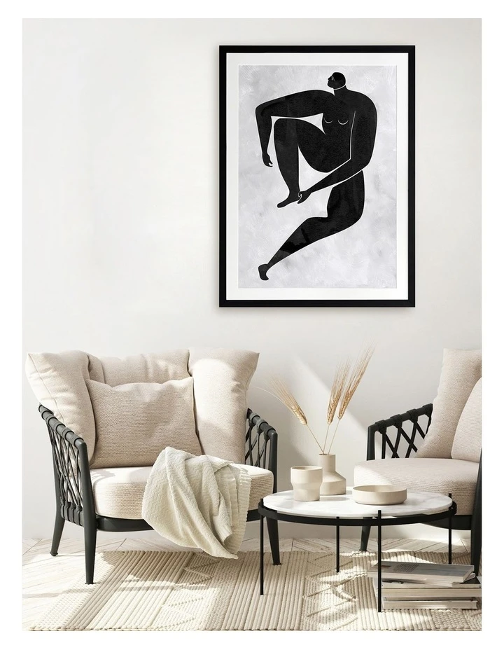 Lydia Cut-Out I Print Black Frame – Drawing inspiration from the iconic cut-out style artwork from modern art master Matisse, this artwork features a simplistic, caricature-like portrait of a figure with exaggerated limbs. The colour palette is bold and monochromatic, featuring a black coloured figure against a light grey textured background. This artwork has been created to match with Lydia Cut-Out II, III and IV.FRAMED ART: Giclee printed using archival inks and paper – which means no fading! Framed with a quality moulding and mounted behind museum grade plexiglass. Comes ready to hang.