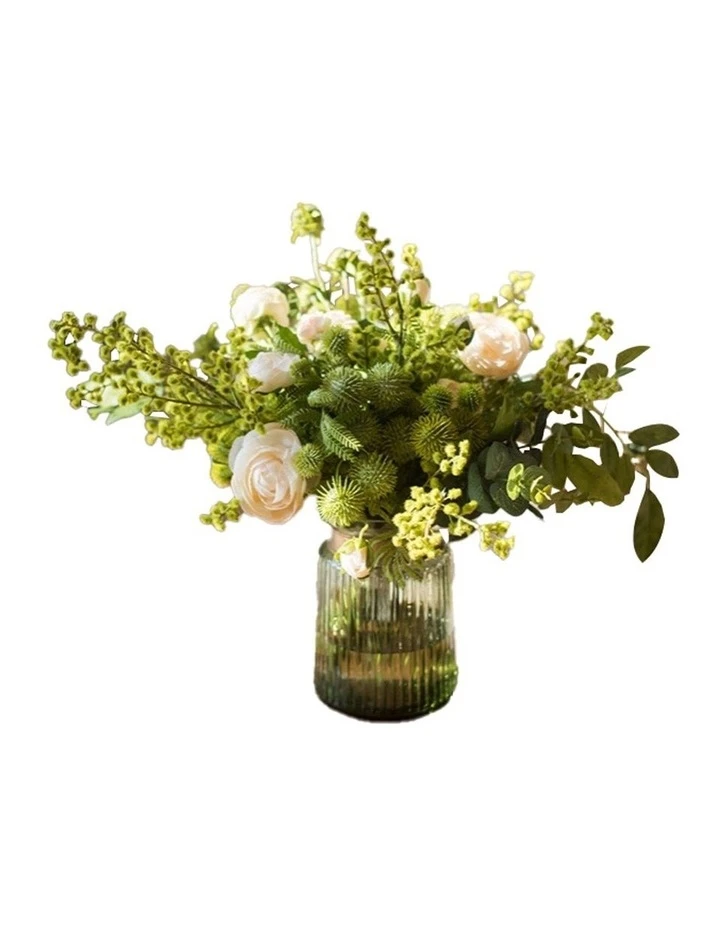 Plastic pink and green arrangement with 38cm high in a ceramic pot