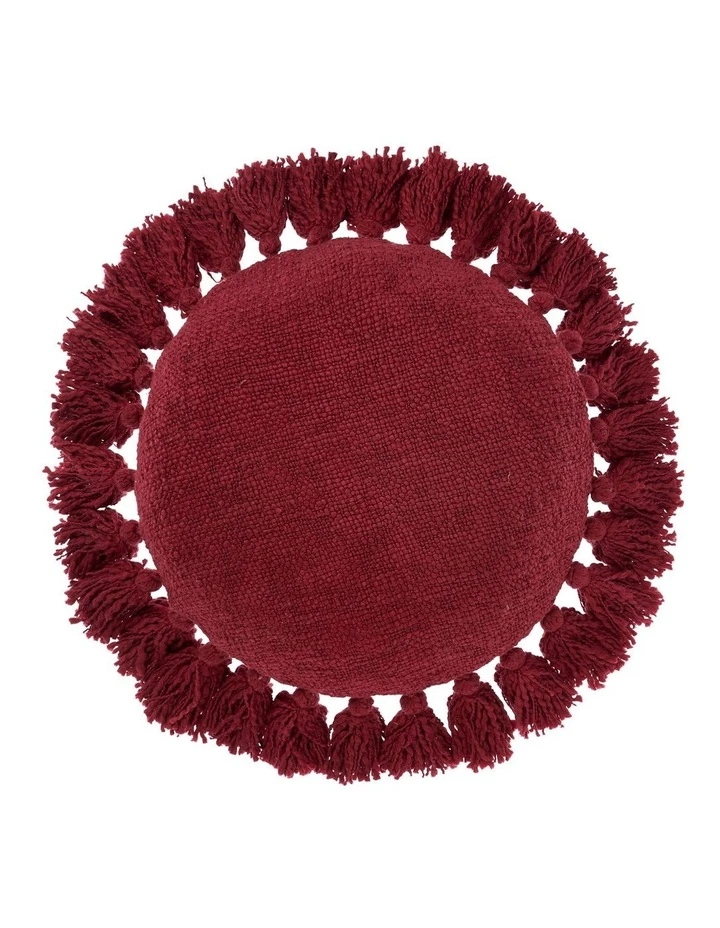 A complete show-stopper for Boho enthusiasts, our round Florida cushion, which now comes in salsa, is made from woven cotton and is trimmed with statement tassels.