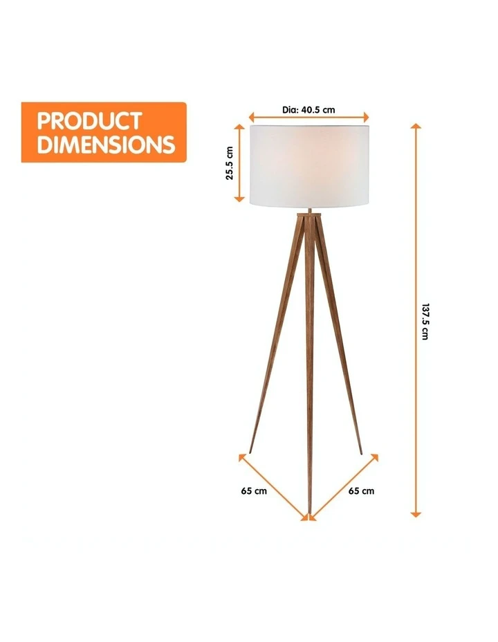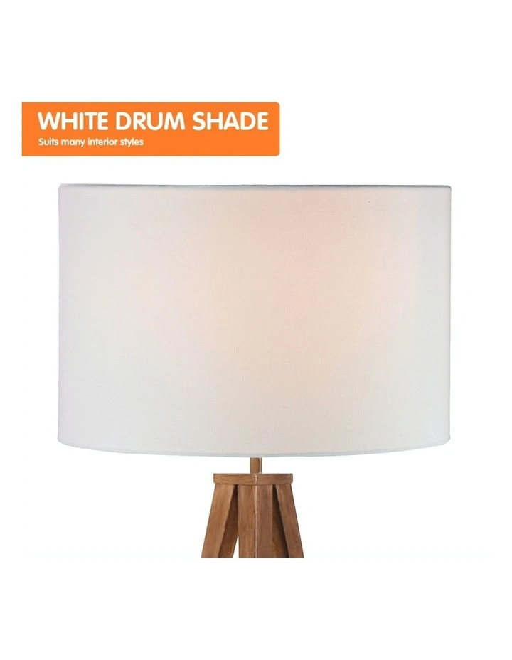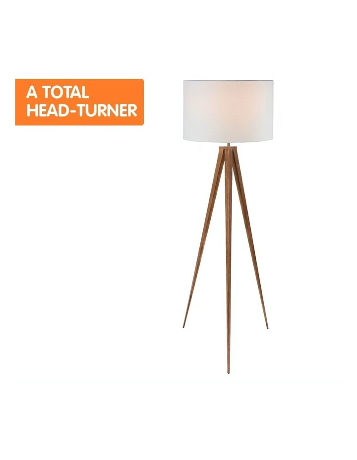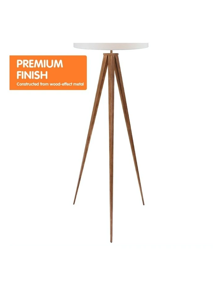 The wood-effect tripod lets you enjoy the look of natural materials with the durable qualities of metal. Its legs narrow into fine points, giving this lamp a dramatic look while remaining sturdy and stable. The floor lamp also comes with a white drum shade that casts an ambient glow.