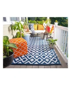 Deals ⭐ Fab Habitat 180x270cm Marina Indigo Blue & White Recycled Plastic Outdoor Rug and Mat ⭐