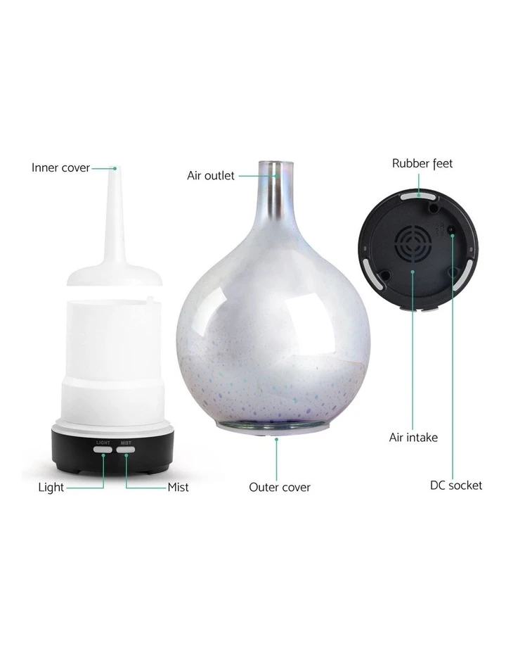Enjoy the calm and soothing vibes from our beautifully-designed Aroma Diffuser. Compact and smooth, the diffuser works in four ways: as a humidifier, purifier, night light and aromatherapy device. With its ultrasonic technology, the diffuser uses electronic frequencies to create vibrations in water.