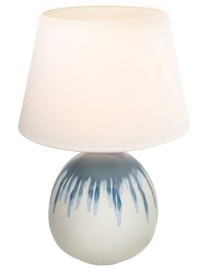 The contemporary look of the Candy Ceramic Table Lamp makes it a statement piece in your home. With a durable ceramic rounded base, a simple linen shade and an eye-catching leaking paint detail. Perfect for the living room or bedroom. Indoor use only. Compatible with E27/Max 60W light bulbs.