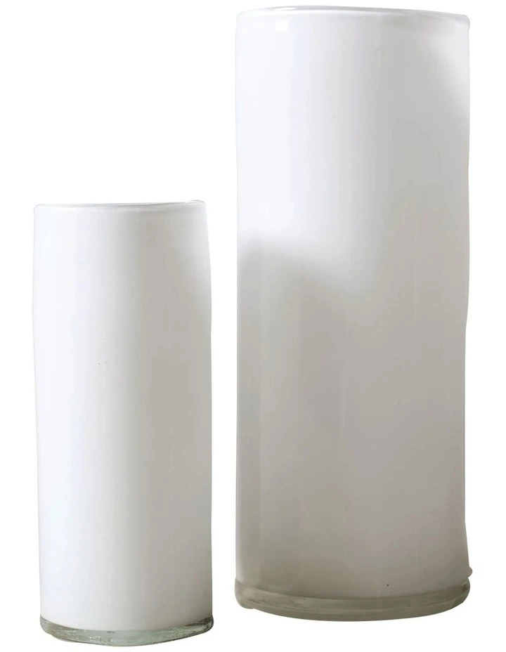 Classic and contemporary in shape, this beautifully simple glass vase in a milky hue enjoys a tall, curved shape.