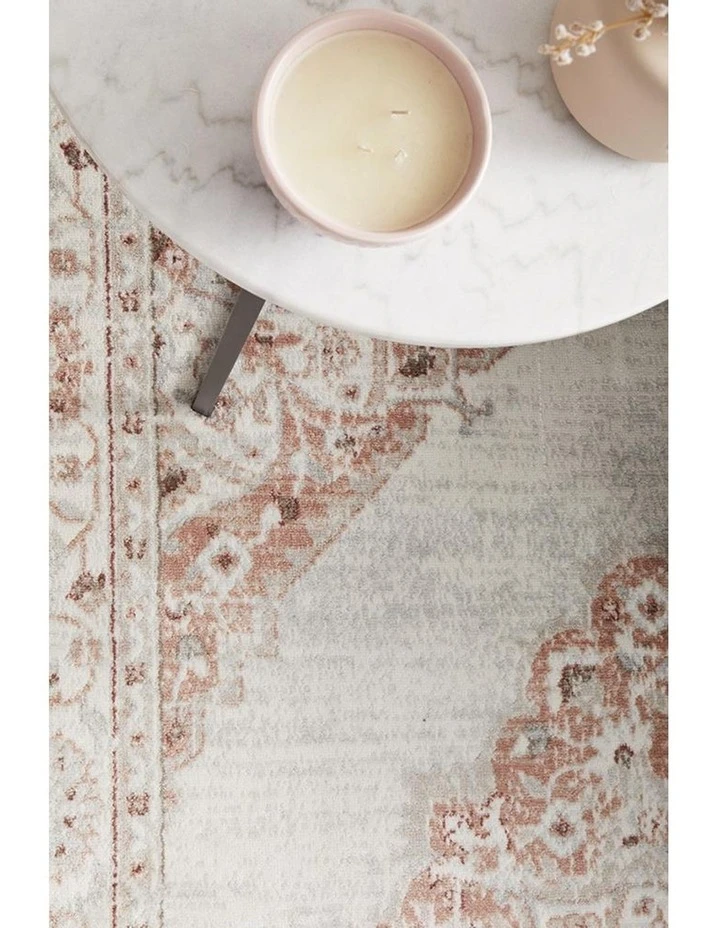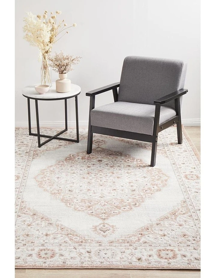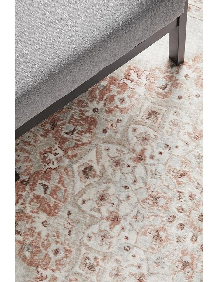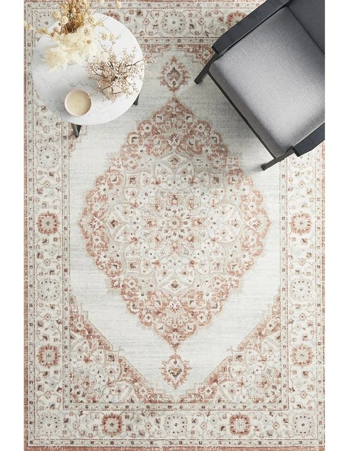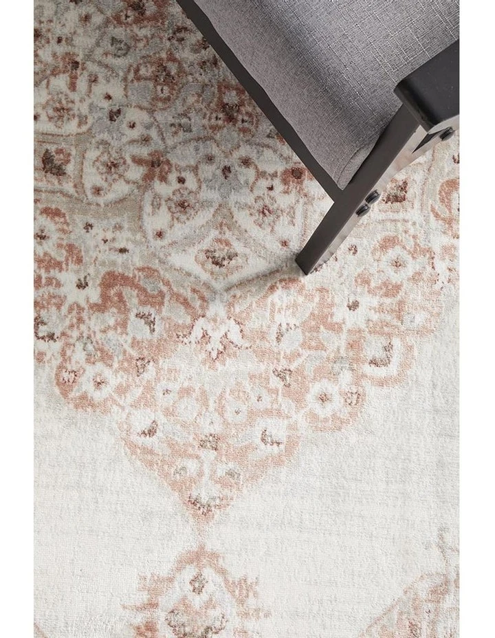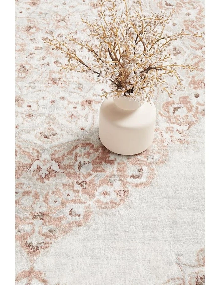Emotion is a truly stunning transitional piece with a beautiful blend of soft blush peach and ivory hues, topped with ornate floral patterns and an intricate diamond design.
